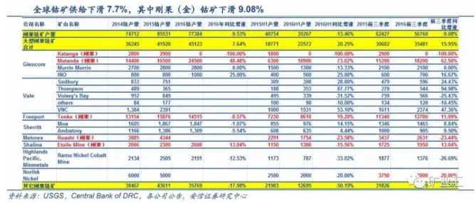 嘉能可对钴的供给有最大的话语权,不过嘉能可在2017年的生产指导中,铜、镍的产量均无明显变化,预计钴产量也将保持稳定。