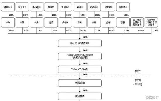 雅迪控股的境内经营实体为雅迪集团(注:经重组,雅迪集团成为所有境内企业的控股公司),在红筹重组前,雅迪集团的股权架构如下:
