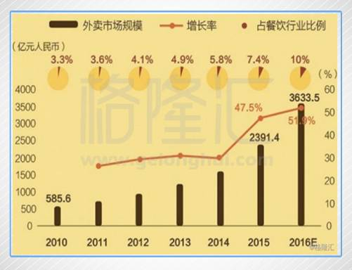 看下图,到了2015年,外卖市场加速发展,据艾瑞数据显示,2015年中国餐饮外卖市场规模已超过2300亿,占整体餐饮的比例上升到7.4%。相比方便面,外卖不输便捷,并且品类更丰富,营养更丰富,同时,外卖平台为推广APP使用,大量烧钱对消费者进行补贴。这很大程度上分走了方便面的消费者。