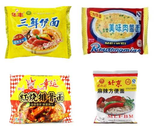 80年代的方便面,如珠海的华丰、冠生园的肉绒面,幸运面,南街村的北京麻辣方便面。