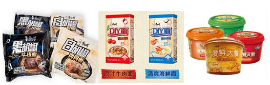康师傅也推出自己的高端产品,黑白胡椒、DIY面、爱鲜大餐等。