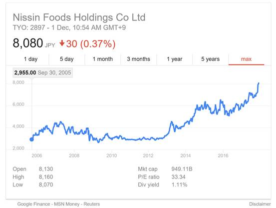 日清株式会社于2004年在日本上市,股价一直以来走得很稳也很健康。