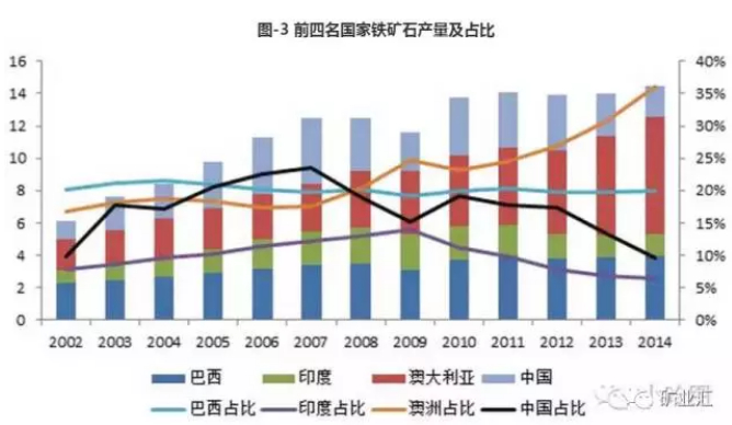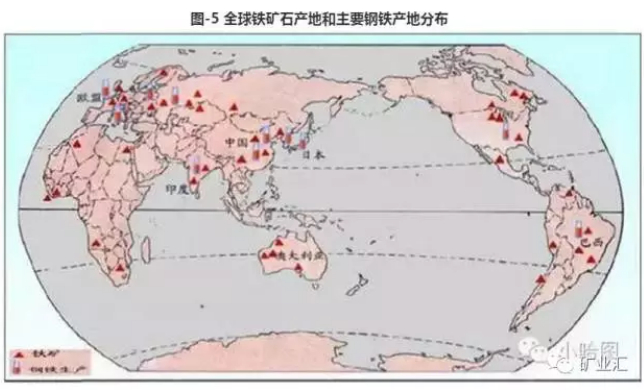 巴西、印度、澳大利亚的铁矿石除了满足国内需求绝大部分是对外出口,所以铁矿石国际贸易形成了由澳大利亚、巴西、印度等国家向中国、日本、欧盟等国家和地区输送的格局。