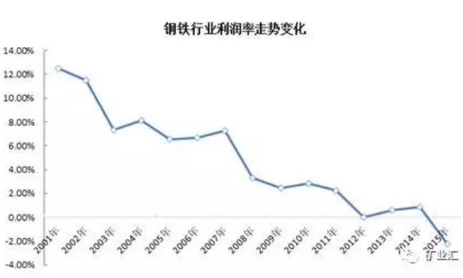 2016年全国钢铁产业,国有和民营企业的盈利加在一起有400多亿。钢铁行业仍处于微利状态,销售利润率比全国工业行业平均水平低三倍以上,仍居末位。