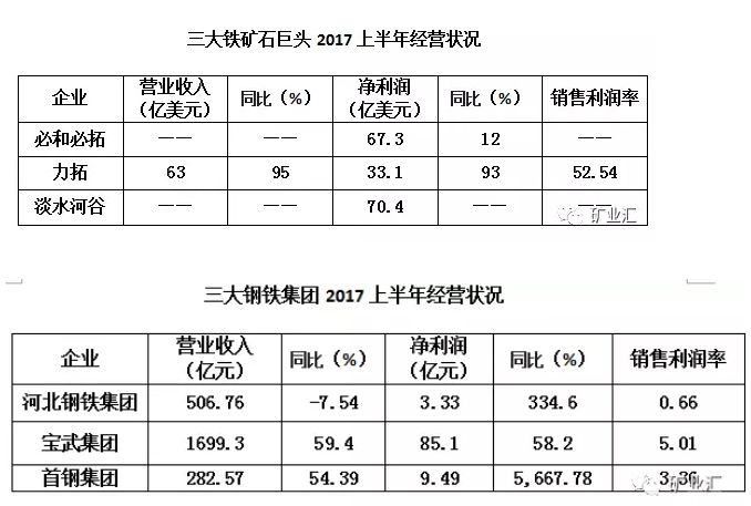 近日,在北京召开的2017中国矿业全产业链大会上,鞍钢集团(00347)副总经理邵安林提及:国际矿山利润率是中国钢铁行业的29倍,并认为这是国际矿业巨头“吞噬”中国钢铁行业利润的表现之一。