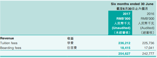 谈完民生教育的学生和学费的增长情况,我们回过头来看看该公司的财务业绩表现,2017年上半年,该公司的收入2.55亿元,同比增长5%,其中学费收入2.36亿元,同比增长4.4%,收入占比92.5%。学费收入可以通过增加学生数量和学生费用提高,上文已经讲得比较清楚,民生教育可能大幅增长的学生情况。不过在住宿费,民生教育仍有较大的提升空间。