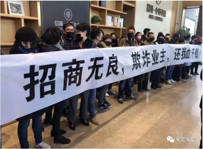 上海宝山招商天地华府,因为在售最后没有涨价,而是降了,所以前面购买的业主就堵了售楼部。