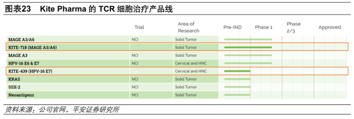 复星凯特就后续产品(即KITE-439及KITE-718)将支付给Kite的全部费用(包括许可费以及全部里程碑付款,不包括销售提成)预计为14000万美元。后续产品KITE-439是表达直接针对人乳头瘤病毒16型E7癌蛋白的TCR细胞治疗产品,目前尚处于临床前研发阶段;KITE-718是表达针对黑色素瘤抗原A3及黑色素瘤抗原A6(常见于膀胱癌、食管癌、头颈癌、肺癌和卵巢癌等实体癌的抗原)的TCR细胞治疗产品,目前尚处于1期临床阶段。