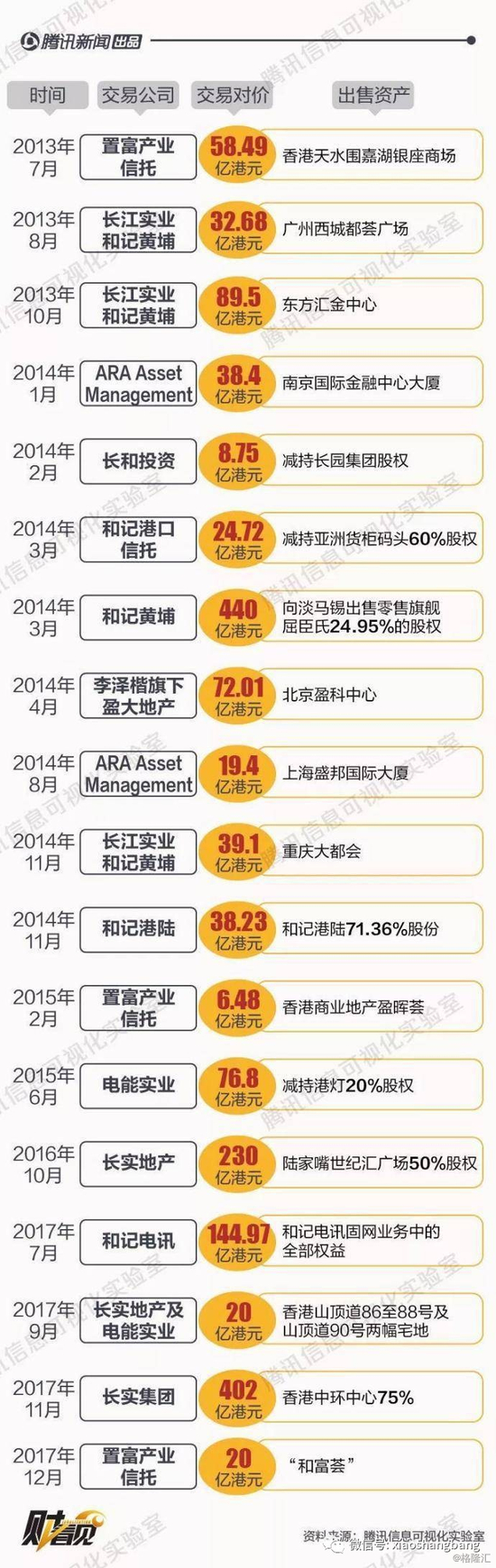 我们来看看李嘉诚从2013年到2017年12月20日的出售版图和购买版图: