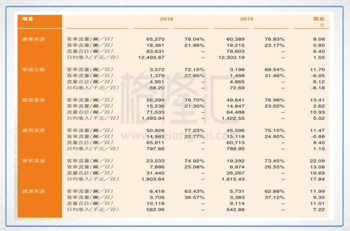 如何看出公司宁沪高速仍然处于高速公路行业的发展阶段?看看公司的所持有的公路收费剩余年限以及车流量情况就知道。目前公司自己控股运营的高速公路有8条,不运营但参股的收费路的高速公路共8条,其中自己控股运营的高速公路包括有及其重量级的沪宁高速、锡澄高速、宁常等重要的高速公路,控股运营部分的公路为2016净利润贡献了85%。
