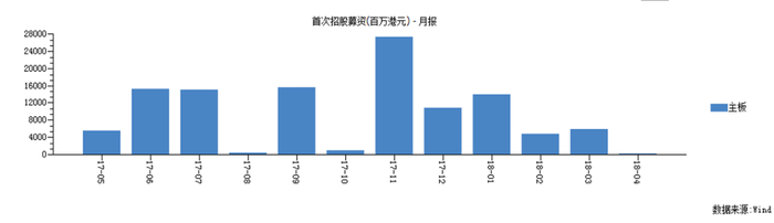 从上图可见,去年11月份港股首次招募资金最多,主要因“冻资王”阅文及众安在线相继IPO。
