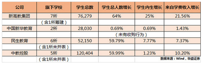 当前民办高等教育公司快速增长的两大逻辑:内生+并购。