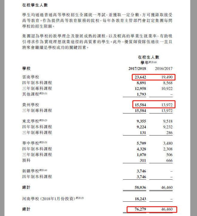 从下图新高教的年报中我们对这一点可以看到,学生人数从4.6万增长到7.6万,增长达到65%,如果不算上新收购的河南学校,内生学生人数增长也达到了24%。云南和贵州学校,受益于当地入学率的提升,学生人数增长保持了相当高的水平。不同于K12学校,高校和在基础设施的利用更为灵活,高校的图书馆、教学楼这些核心设施,不需要因学生人数增长而再配置,每年只需按照招生人数增加相应盖一些宿舍楼,即可满足新的招生计划。
