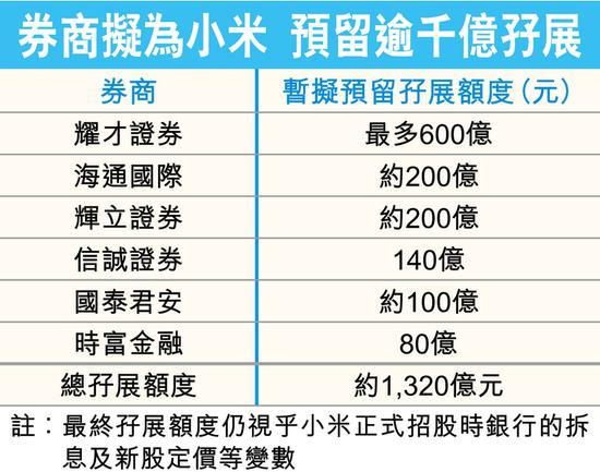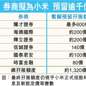 新股孖展大战 券商零息抢客拟为小米预留千亿孖展