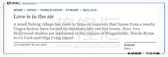 自辉瑞将Viagra(枸橼酸西地那非片)的工厂设在这里,居民开始觉得Love is in the air(爱在空气中),每天都呼吸着“兴奋”的味道,而大家都将这一现象归功了Viagra(枸橼酸西地那非片)工厂。