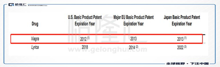 辉瑞的万艾可(西地那非)中国化合物的专利在2011年6月就已经到期,中国地区ED用途专利在2014年7月也已到期,动作最快要的数白云山(874.HK、600332.SH)的金戈(枸橼酸西地那非片)。