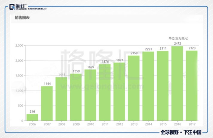 在美国上市的第七周,万艾可就拿下了日处方27万张的销量,这场漂亮仗一直为辉瑞每年带来着十几亿美元的稳定营收,并在2012年达到峰值20.51亿美元的销售额,其主要贡献来自于美国地区。