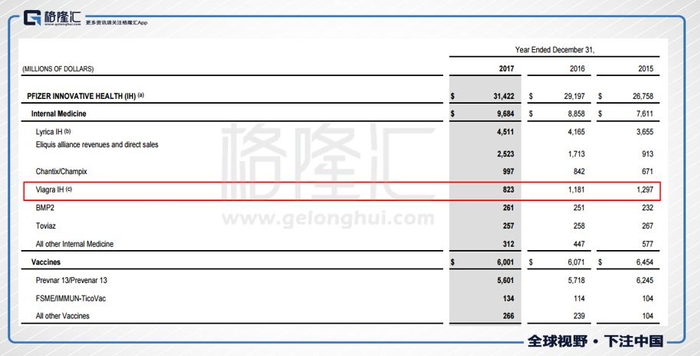 仿制药的冲击是明显的。2017财年,美国地区万艾可的销量从2016年的11.81亿降至8.23亿美元,同比减少了30.3%。骤减的销量让万艾可在美国本土的销量直接跌破十亿美元,而花旗分析师预期,万艾可美国本土的销量今年将跌至5亿美元,2020年降至1.9亿美元。