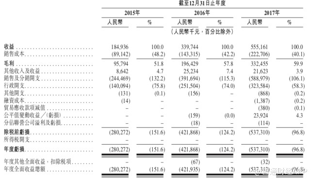 这一现象也可以在沪江的财务数据中看到。据其招股书披露的数据,沪江的营收连续三年以翻倍的态势增长,但净利润则在下滑。财报显示,2015年-2017年,沪江连续3年出现亏损,分别约为2.8亿元、4.22亿元、5.37亿元。向好方面是,沪江亏损在缩窄,亏损率逐年在降低,3年来亏损率分别为151.6%、124.2%、96.8%。