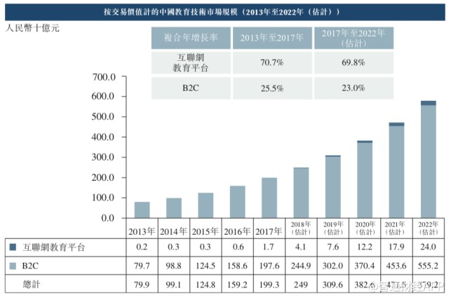 尽管沪江拥有庞大的用户数量,但其仍有巨大的增长空间。根据弗若斯特沙利文资料,预计 2022 年,中国互联网教育的市场规模将达到 5792 亿元人民币,中国互联网教育市场学员人次总数会达到约2.83 亿人。