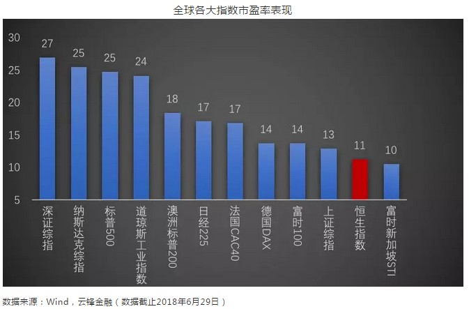 考虑到估值,经过上半年的调整后,恒指的估值回归到十年平均线左右。截止2018年6月29日,恒生指数市盈率为11.22倍,略低于最近10年的平均估值11.29倍。