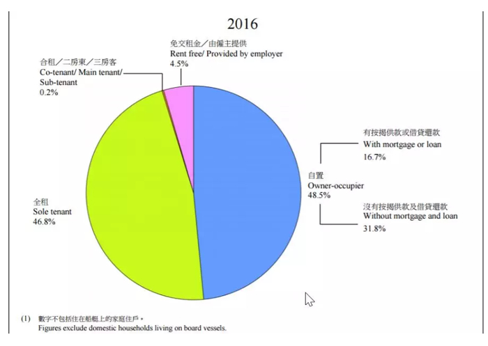 3、截至2016年,香港有超过65%的买房人没有处于无贷款状态。据我之前了解到的数据,2017年这个数字上升到超过70%。这意味着香港人的财务状况要比我们想象的好。