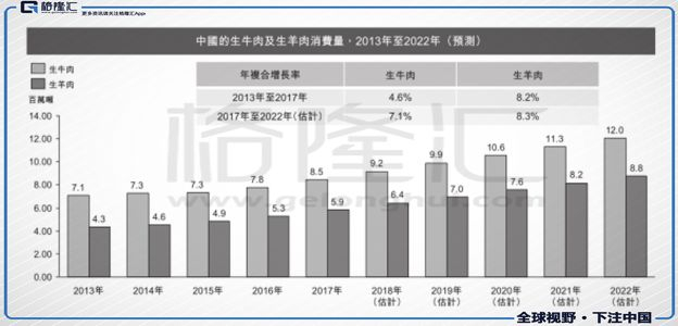 同时,中国的肉类消费市场目前仍主要以猪肉消费为主,按2017年的消费量计,生牦牛肉市场占中国生牛肉市场的4.7%。但随着民众的可支配收入日益增长以及对健康饮食的意识日益提升,牛羊肉也越来越受到消费者青睐。2013年至2017年,中国的生牛肉及羊肉的消费总量分别以4.6%及8.2%的复合年增长率增长,据预计未来5年仍将分别以7.1%及8.3%的复合年增长率增长。作为行业的龙头老大,公司无疑还将明显得益行业未来增长空间。