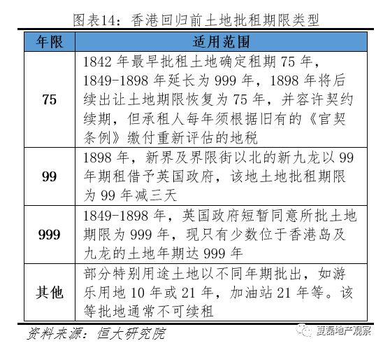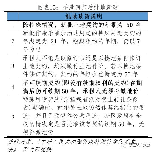 (1)土地批租期限:回归后统一为50年