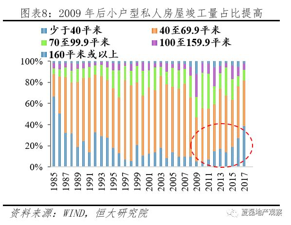 高房价一方面脱离了居民购买能力,自置居所住户在香港家庭住户总数占比从2004年的54.3%下滑到2017年的49.20%;另一方面使得小面积户型广受欢迎,住房条件改善有限。2009-2017年,40平米以下私人房屋竣工量占私人房屋竣工量的比重从5%提高到39%。