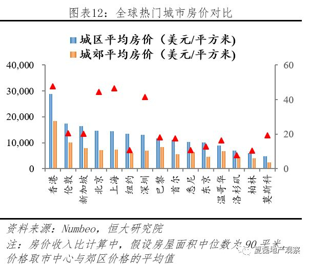 经济高度繁荣的背后,住房却面临困境。一方面,市民居住条件较差,人均住房面积仅16平米;另一方面,房价持续多年上涨,居民买房背负巨大压力。1986-2017年,港岛、九龙、新界的私人房屋均价分别上涨20倍、20倍和 14倍,年均增长10%、10%和9%。2018年11月,香港房价收入比接近48倍,绝对房价与房价收入比均位居世界主要城市前列。