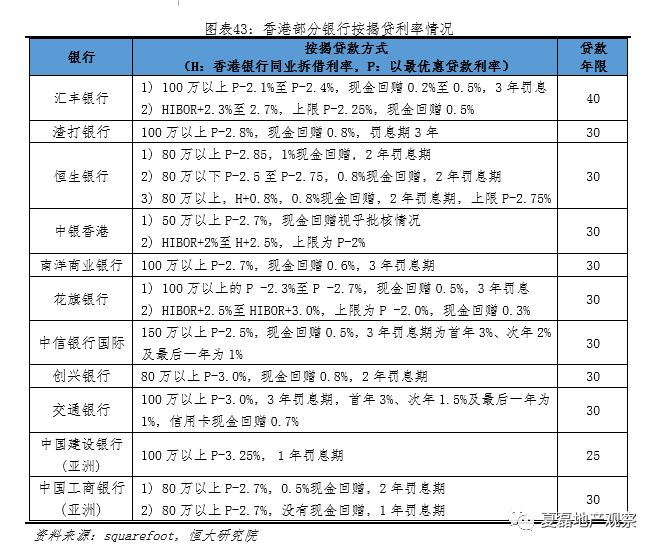 房贷利率低。香港实行联系汇率制,利率追随美国而长期处于低位,目前三大发钞银行按揭利率上限2.35%。按揭业务灵活,叠加利率低,刺激居民加杠杆购房。2017年,香港按揭贷款余额占GDP的45%,居民杠杆水平较高。