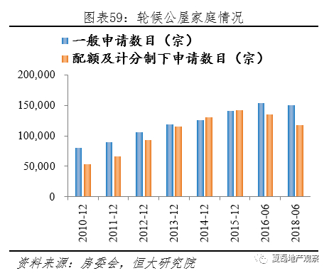 另一方面,2002年以来房源供应过少,对中产置业缺乏支持。1979-2001财年,房委会旗下资助出售单位年均竣工9238个,到2002-2017财年,年均仅竣工580个,多数资助出售计划已经终止。2018年7月,房委会推出新一期白表居屋第二市场计划,房屋配额只有2500个,却收到超过60000份申请。