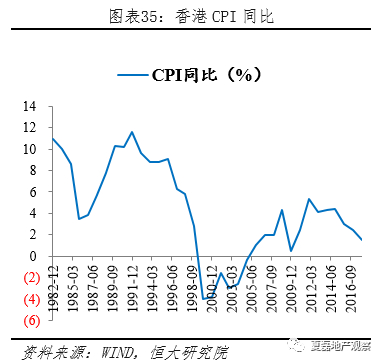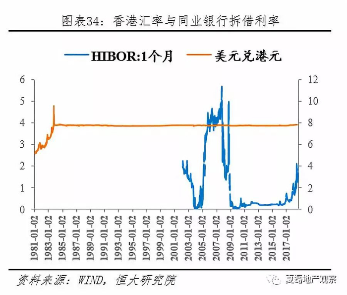 香港实施联系汇率制度,货币政策盯紧美元。香港于1983年10月实施联系汇率制度,维持美元兑港元汇率7.8:1左右。由于经济自由开放,联系汇率制度使得香港无法执行独立的货币政策,市场利率被动追随美国利率。1982-1988年香港通胀率居高不下,实际利率低至负数,大量资金涌入房地产,刺激八九十年代香港楼市火热。