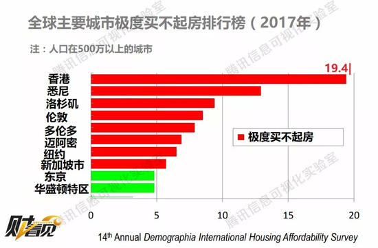 香港房地产市场历经几十年发展,房价基数已十分高昂。根据美国城市规划咨询机构Demographia发布的《全球房价负担能力调查2018》, 2017年中国香港连续第八次成为全球房价最难负担的城市,属于“极度负担不起”之列,供房负担比例从2016年的18.1倍上升至2017年的19.4倍,这个数字意味着如果不贷款,香港人买房需要从不吃不喝18.1年变为为19.4年。