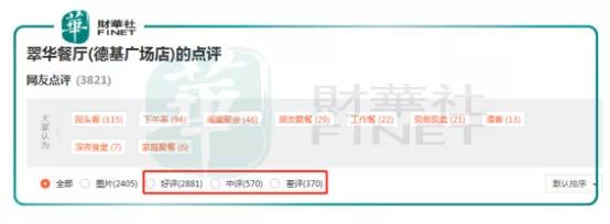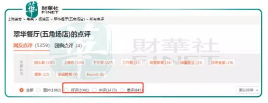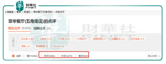翠华餐厅上海五角场店的好评率只有56.75%