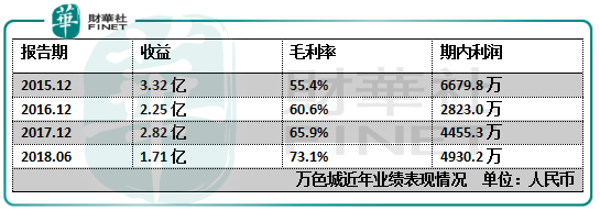 2015年,万色城与其当时最畅销的产品系列之一的万色水母I系列主要供应商终止合作关系,这对其美容产品于2016年的销售带来严重影响,并拖累万色城综合业绩在2016年出现下滑态势,收入及利润分别从上年的3.32亿元(人民币,下同)及6679.8万元下跌32.3%及57.7%至2.25亿元及2823万元。