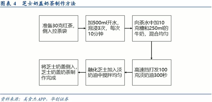 原材料品质差别有限。各品牌现制茶饮虽然在原材料配比等方面有所不同,但一旦形成标准之后具有高度可复制性。现制茶饮的原材料主要包括茶叶、牛奶、水果、芋圆、椰果、芝士、珍珠等。现制茶饮淡化了茶的属性,有品类无品牌,在经过加工和混合之后,品质差别较难分辨。鲜牛奶等其他配料属于日常消费品,采购难度较小,品质差异有限。