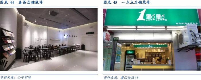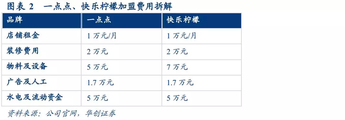 十万创业、简易上手、原料简单,使得奶茶店几乎成为进入门槛最低的餐饮业态。以一点点奶茶和快乐柠檬为例。根据二者公司官网的加盟信息,假设在某二线城市开设面积为50平米的店铺,初始投入资金均在20万元以下,且从申请加盟到店铺开业仅需不到半年时间,而开业后半年可回收投资成本。如开设自有品牌的奶茶店,其物料及设备成本将会更低。同时,现制茶饮店铺面积较小,选址灵活。因此现制茶饮几乎成为进入门槛最低的餐饮业态。