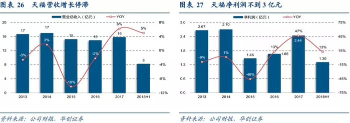 天福已完成自建茶园、自建门店、自建茶室的供应链体系,拥有茶叶、茶点、茶餐等全产品布局。截至2018年6月30日,天福共拥有1116家自有及第三方零售门店及专卖店,拥有我国传统茶叶品牌最强的流通渠道。在产品方面,天福以茶叶为依托,开发了茶食品、茶具等周边产品,营收占比超过25%。随着流通渠道的完善和相关品类建设,天福的品牌影响力有望进一步提升,从而获得更多的市场份额。