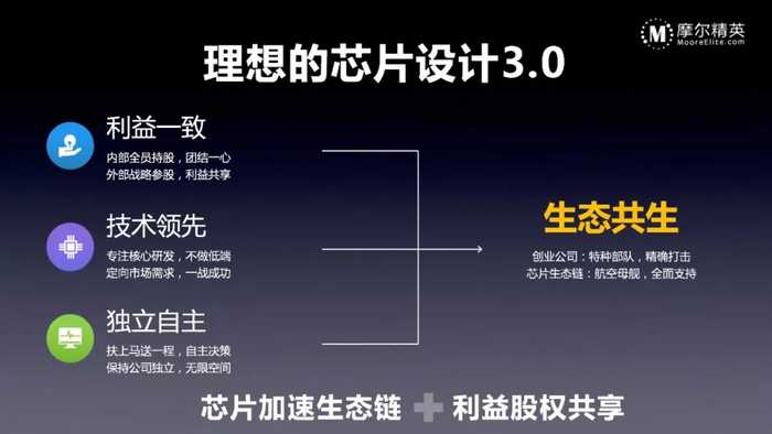 理想的芯片设计3.0模式,可能不是一个单体公司,而是一个利益股权共享的芯片加速生态链共生体系,每个芯片公司是特种部队,精确打击,单点突破;而生态链作为航空母舰,五角大楼,提供全面支持。
