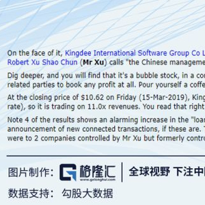 David Webb的确是一位经验丰富的挖掘信息的能手,他列举的证据看上去有理有据,如果这些问题真实存在,金蝶的业绩可能的确存在“泡沫”。