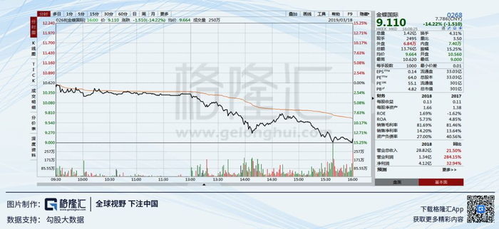 就在上周,金蝶发布2018年年报,2018年公司实现营业收入28.09亿元(32亿港元),同比增22%;实现归母净利润4.12亿元,同比增33%。受益于这份财报的带动,3月15日(上周五)的最高价达到10.96港元,总市值达到362亿港币。今天的收盘价距离最高价已下跌了近17%。
