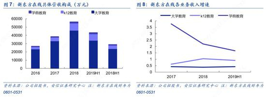 未来k12和学前教育领域成为重要增长点,也是公司大力布局领域。根据公司战略计划,将进一步加强我们在大学教育分部的市场领导地位,扩大在K-12和学前教育分部的市场份额,并选择性地进军市场需求尚未得到满足的新分部。新东方在线k12的东方优播采取的是下沉至三、四线城市开设线下体验店,再引流至线上订课的战略布局。招股书显示,截至2018年5月31日,新东方在线针对k12教育的东方优播平台在全国10个省份的26个城市建立了体验店,而截至2018年11月30日,公司的版图扩张到了全国14个省份的51个城市。