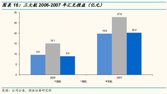 净利润:三大航2006-2007年间合计利润总额为102.4亿元,汇兑净收益合计101.3亿元,汇兑净收益数额接近利润总额。