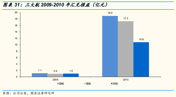净利润:三大航2009-2010年间合计利润总额为353.8亿元,三大航汇兑净收益合计49.9亿元,利润增长更多的是来自于供需大幅改善带来的业绩攀升。