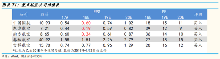 中性假设布伦特原油均价为70美元/桶,则2019年四季度的同比涨幅分别为4.1%、-6.6%、-7.7%、1.4%。可见航空公司燃油成本上涨压力将逐步减小,并整体转为对航空股的利多,届时航司收益水平的提高将充分体现在航司业绩上,航司运输毛利有望大幅提升。