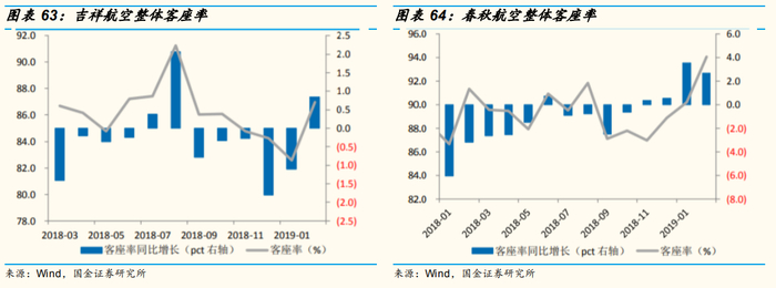 国内与国际线需求旺盛,推动航空公司整体客座率提升。2月国航、南航、春秋、吉祥整体客座率分别同增1.3pct/1.7pct/2.7pct/0.8pct。