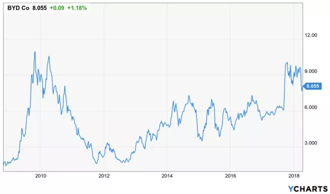 2008年9月,雷曼兄弟垮台、金融危机渐深、油价暴跌、新能源随油价的节奏而从风口跌落,在这种抛甩股权为主流、持有股权为找死的乱世里,伯克希尔用1.03美元(8港元)价格吃进了2 .25亿股比亚迪股票,成本约为2.32亿美元。仅仅一年后,比亚迪的股票就猛涨到了88港币,一年实现11倍收益。而后,随全球经济进一步陷入泥潭,比亚迪公司利润在2012年猛降94%,股价快速地跌到伯克希尔的建仓线附近。