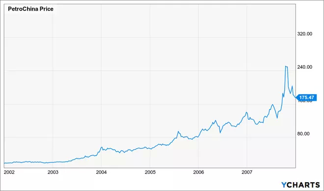 2002年到2003年间,伯克希尔斥资4.88亿美元,买入中石油1.3%的股份。当时中石油市值大约是350亿美元,巴菲特估算至少应值1000亿美元。老爷子还是保守了。而后油价大涨,中石油市值水涨船高到2750亿,老爷子这笔投资,五年里上涨了七倍。