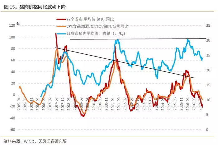 此外,猪肉价格的权重在2016年由3%左右降至2.5%。